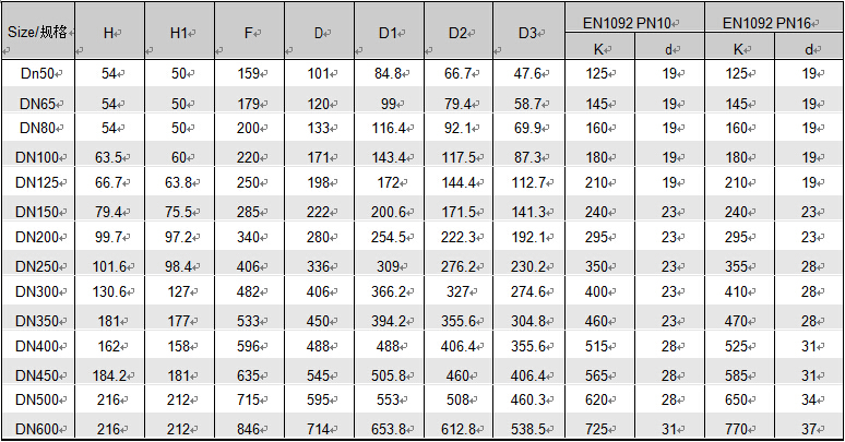 - Work Pressure/工作压力:PN16 DN50-DN400 PN10 DN450-DN800