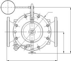遥控浮球阀一般分为隔膜型和活塞型两大类,本厂生 产 的 遥 控 浮 球 阀 口 径 在DN500mm以 下 采 用 隔 膜 型 , 口 径 在DN600mm以上采用活塞型,两者之动作原理类似。