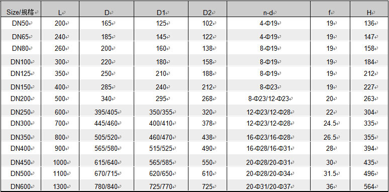 - Size/瑙勬牸锛欴N50-DN600