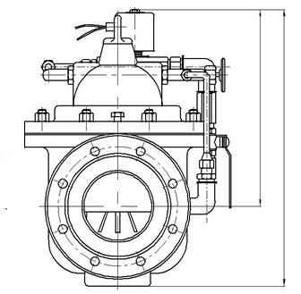 By setting the flow rate of upper pilot valve(2) and flow regulating valve(3), the flow rate go through the main valve is maintained and it will not change if any water pressure change from entry line.